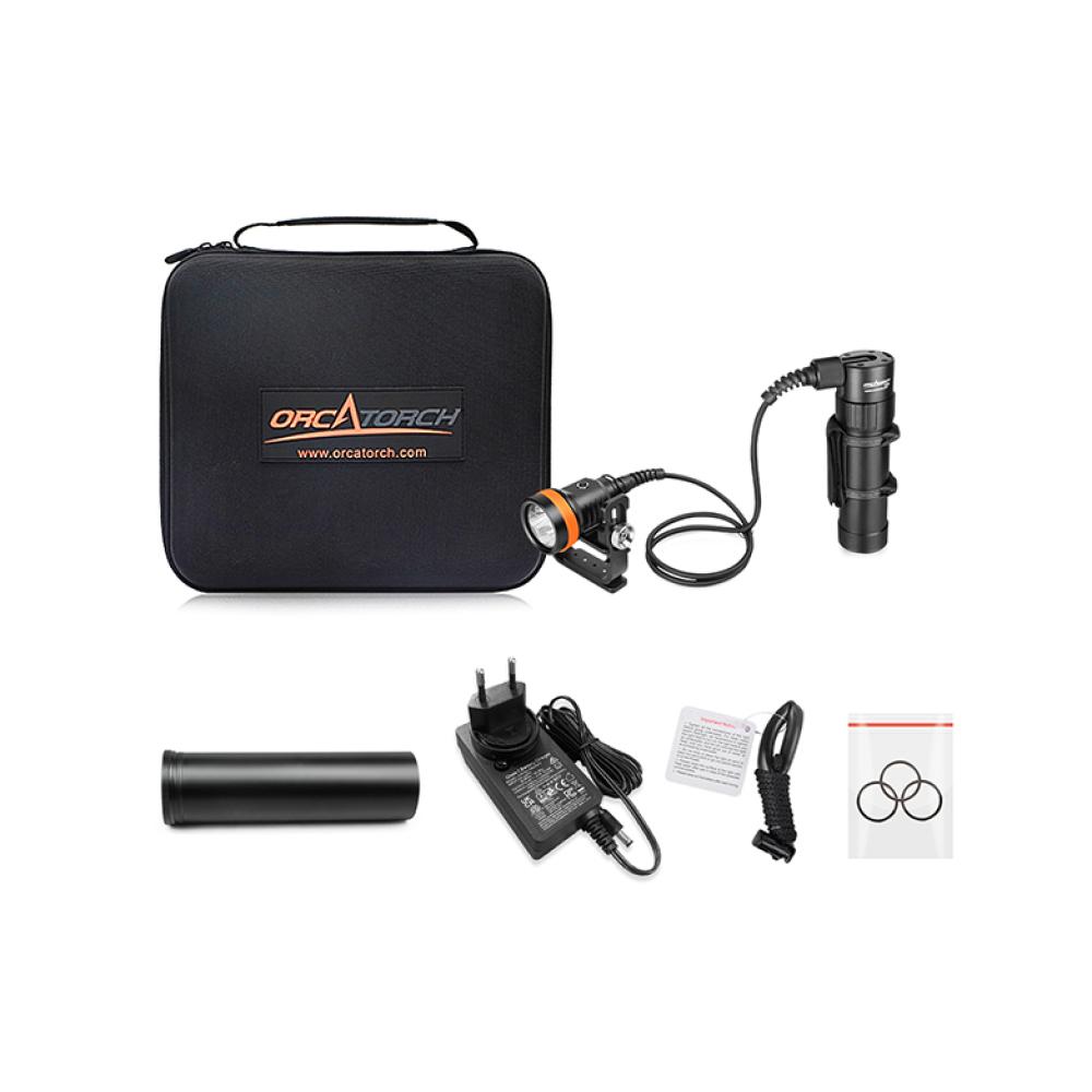 The OrcaTorch D630 v2.0 is a canister dive light designed specifically for cave diving, wreck diving, and other technical diving activities. It offers a maximum brightness of 4600 lumens. The D630 v2.0 features an adjustable angle cable 1.2m, supporting both 90° rear mounting and 180° side mounting to meet various usage needs. The built-in high-capacity battery pack provides an extended runtime of 4 hours and 20 minutes at high brightness and can also be used as a power bank. When the battery level drops below 10% (6.2V), the battery protection function automatically activates emergency lighting, offering 120 lumens with a runtime of approximately 5 hours to ensure your safety.